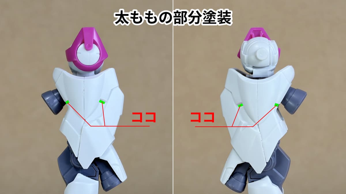 目立つのは太ももの側面だけです。あとは合わせ目ではなくパーツ分割を活かしたパネルラインになります。