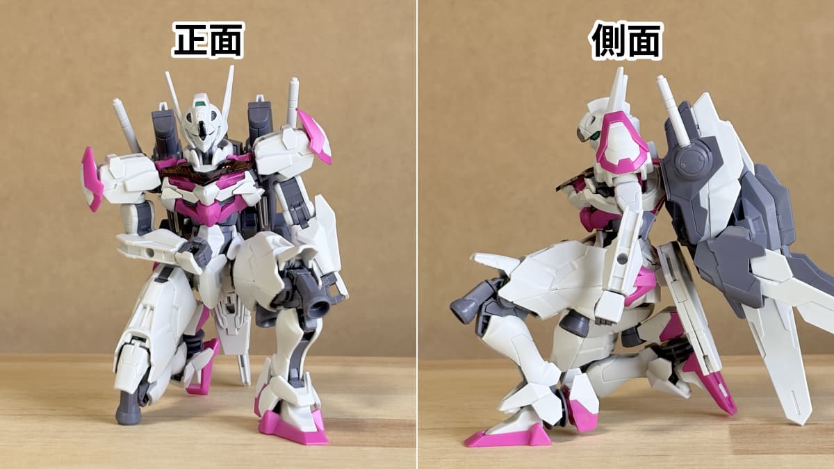 つまり、HGガンダムルブリスは付属する装備と同じくらいの重心や重さなら安定して立ってくれるので、一時的に飾る時も安心です。