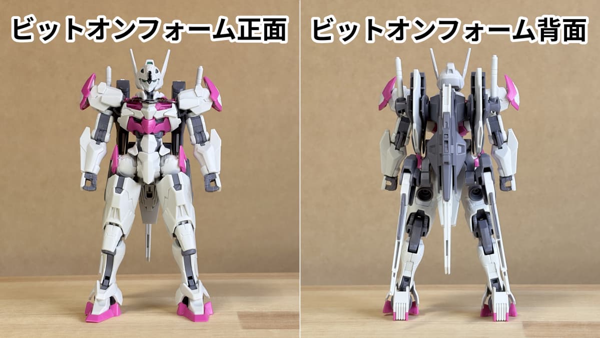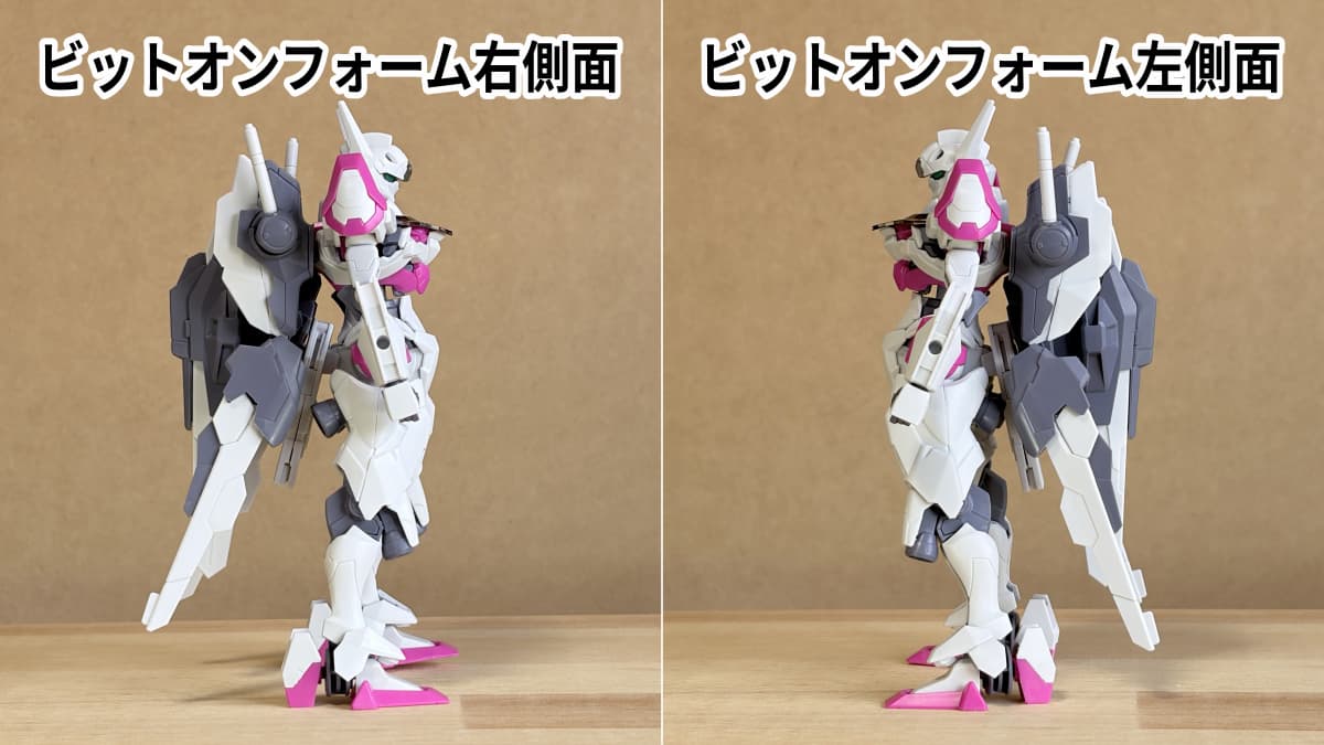 - バックパック:こちらも脇の下のピンクの外装と同様にアニメでは確認できないですが、肩口のビットステイヴ接続面の裏側になる部分にパーツ分割を活かしたパネルラインがあります。